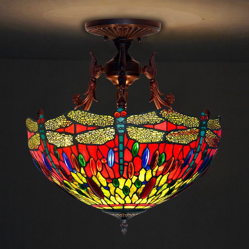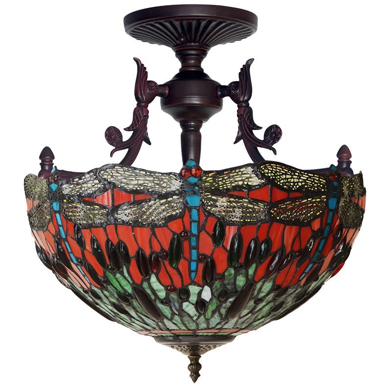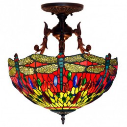 40 cm Retro Libelle Tiffany Buntglas Pendelleuchte